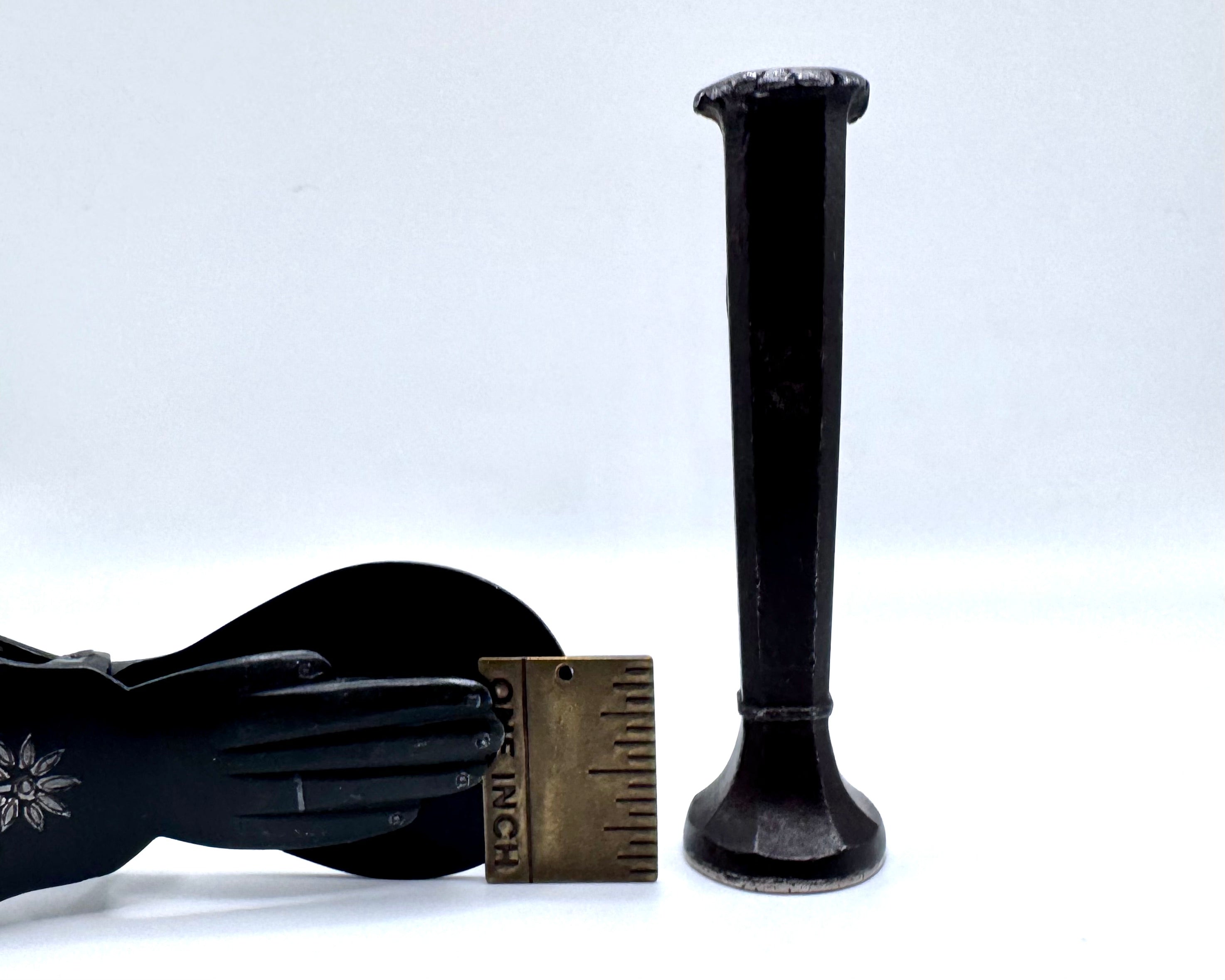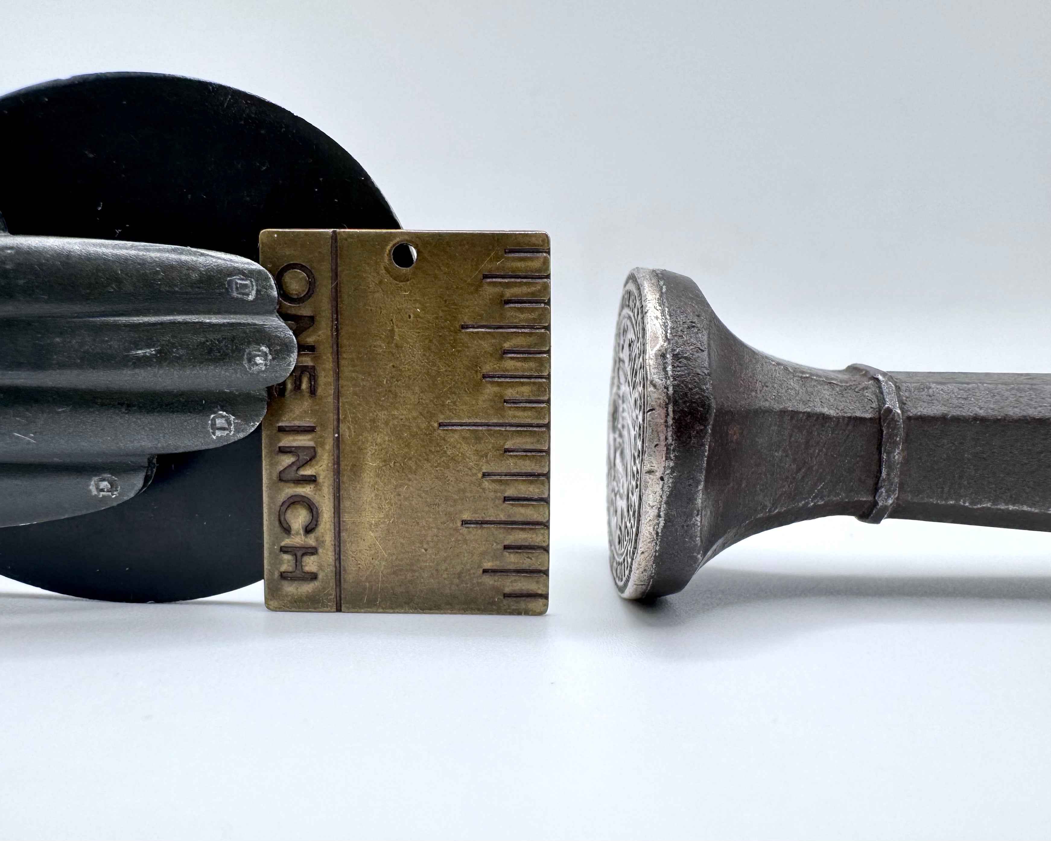 - handle - all one piece of heavy metal but the top is a bit flared, perhaps evidence of being struck with a hammer which has me wondering if it was originally meant to strike medals and not meant as a wax seal