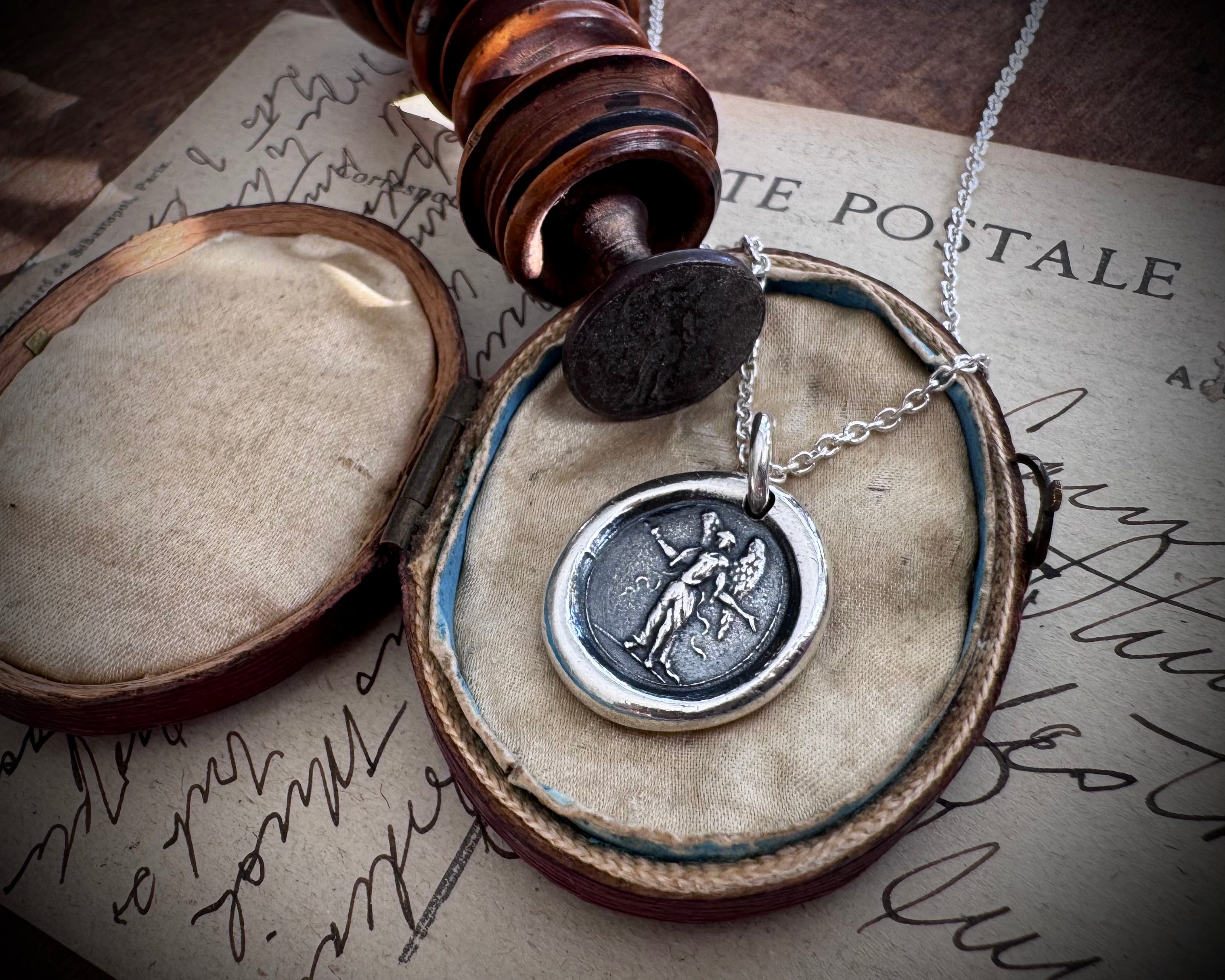 Guardian angels watch over all who believe. A lovely protective talisman for yourself or a loved one ... meaningful wax seal jewelry.