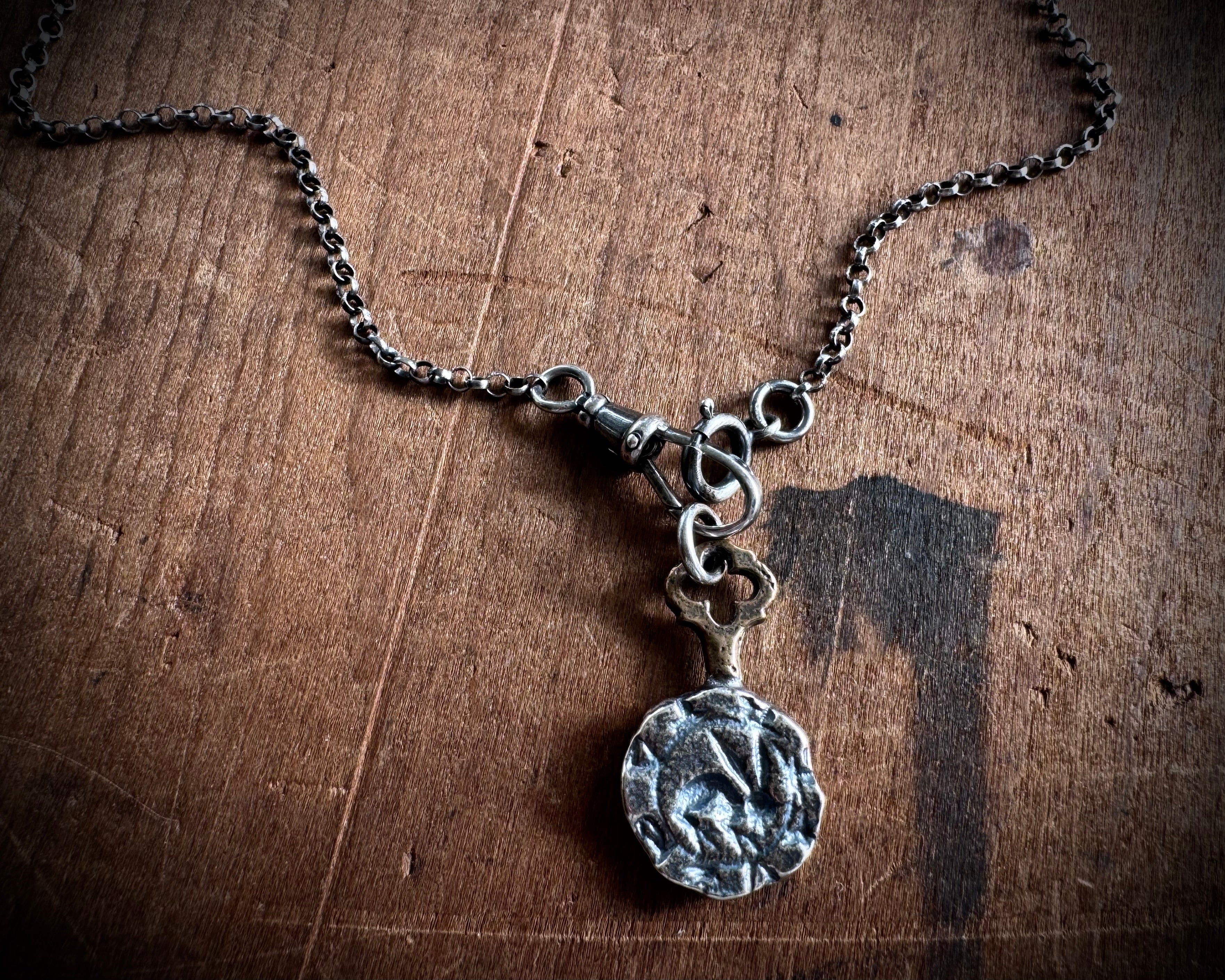 hare intaglio seal relic necklace - PRIVESV - medieval wax seal jewelr