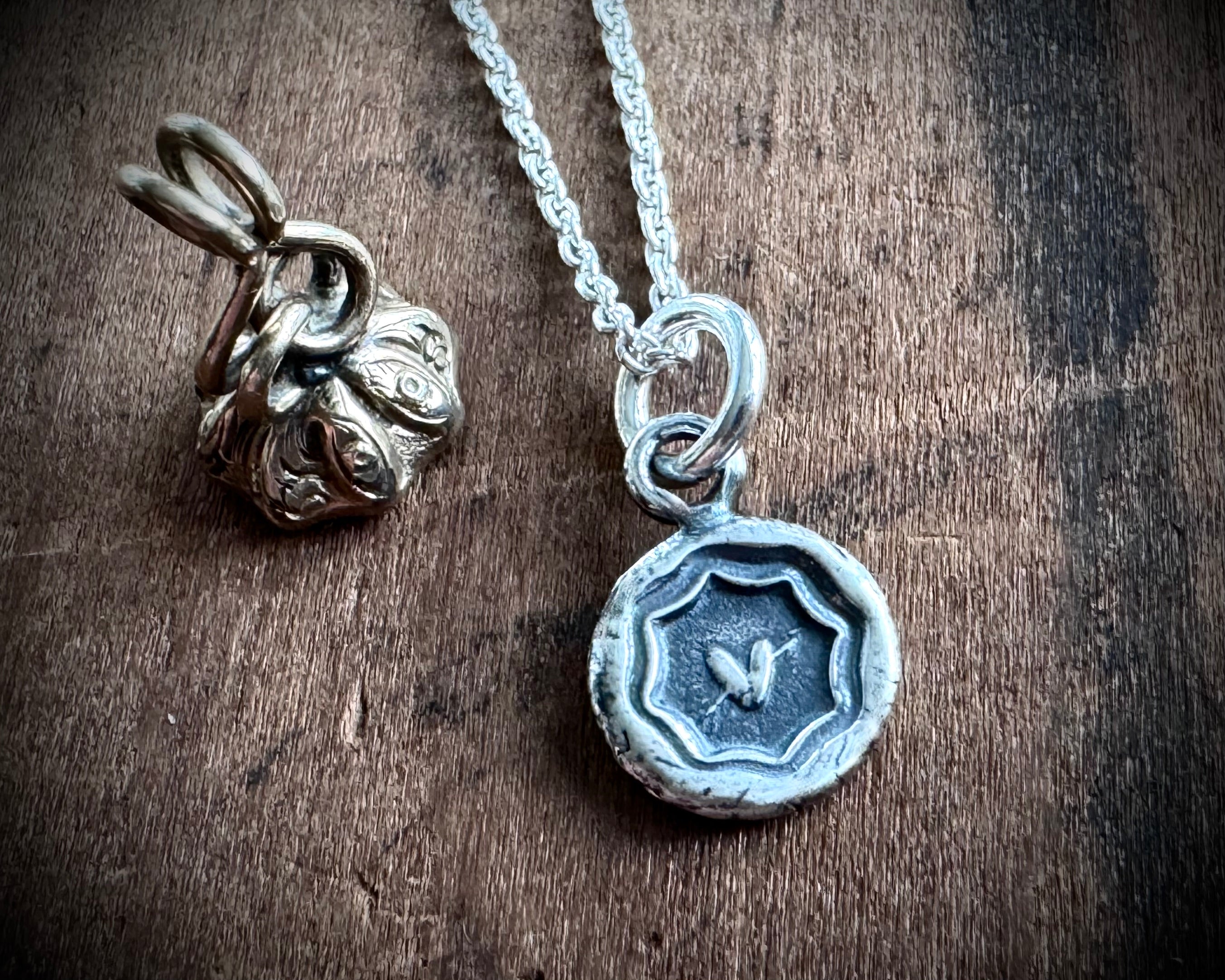 Sealed with love, a tiny sterling silver pierced heart wax seal necklace pendant.